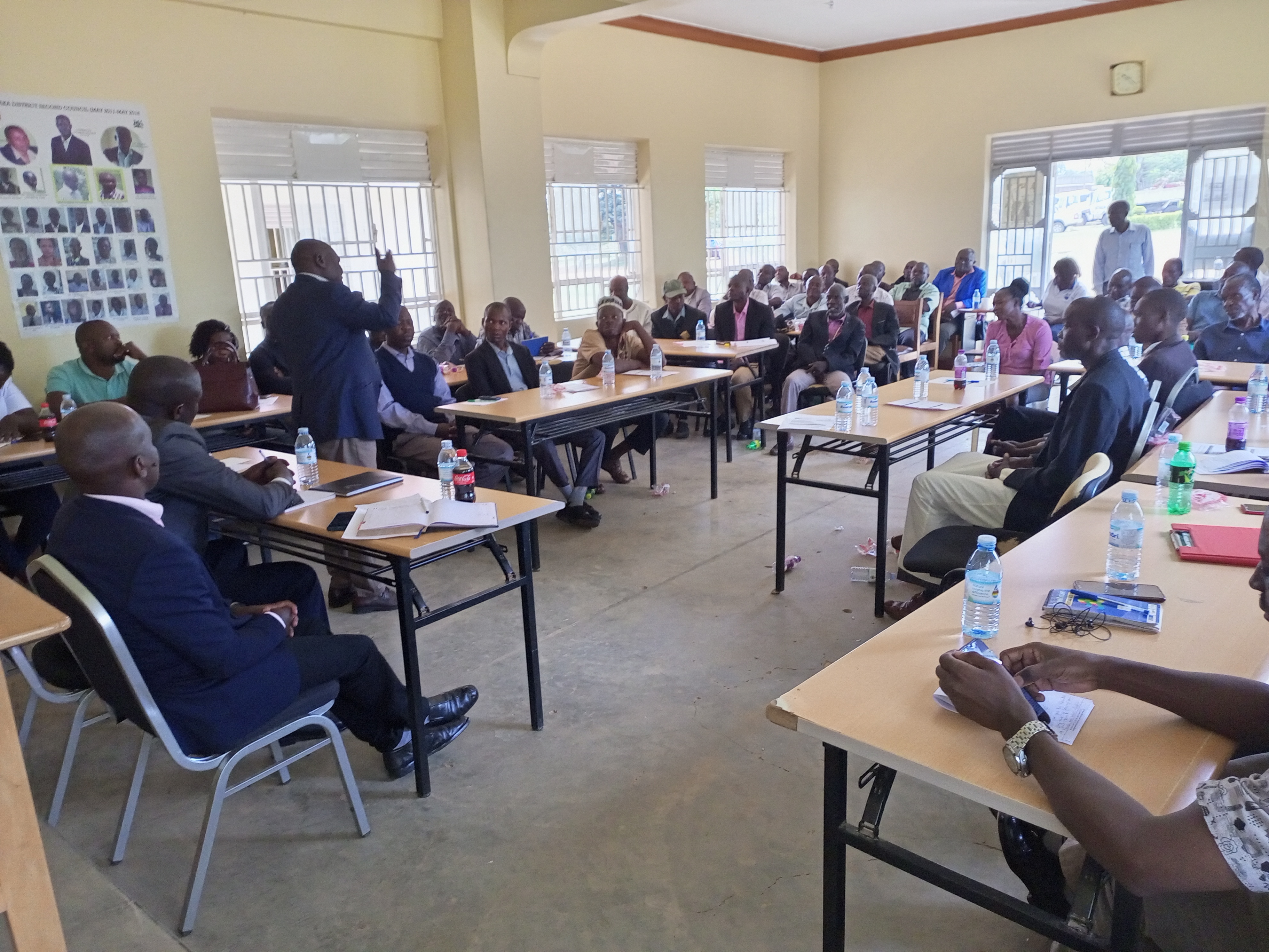 RDC Budaka has called upon National Water to expedite the process of connecting water to the district and its neighbouring districts due to the so many water challenges faced by the people.The call was made today during a sensitization meeting on Geo-technical investigations of LCI,LCII&LCIII Chairpersons and CDO’s conducted in the district council chambers by National Water and Sewerage Corporation.Mr.Magunda George the Resident District Commissioner explained that the issue of water shortage was worse in water stressed belts like Naboa,Kakoli,Budaka,Lyama and Tademeri subcounties among others.He further explained to members that the NRM government promised to dupply clean and safe water to people by 2026 which he believed was yet to be fulfilled.He appreciated government for the work it was doing in improving the lives of the people through extending services closer to them through programs like EMYOOGA, PDM and now water.He warned beneficiaries of EMYOOGA against refusing to pay back the money and promised to arrest them starting the following week.The Chief Administrative Officer, Mr.Piwang Elly called for maximum cooperation between the community and the contractor when the actual works commence in April.CAO also appreciated the team from NWSC,political leaders for attending the meeting aware that they were exercising the governance and administration, infrastructure and economic services one of the pillars under PDM.The Mobiliser with Ministry of Water and Environment asked the Town Clerk of Budaka Town Council to assess land for the construction of a public toilet.She added that there will be no compensation for the land where the project will be implemented.She further asked the leaders to continue sensitizing communities at various forums that they get access to communicate.The Vice Chairperson Hon.Mukono Tom ,who represented the District Chairperson during the meeting then thanked the team from NWSC for bringing services closer to the people and also asked communities to provide support to the contractor.The Project manager informed members about the need to measure the land and pipes suitable for the project.He added that the project will start from Namatala which will be done in 03 months.He called for cooperation from all stakeholders.The Regional Manager informed members that the water will be supplied in towns first as the priority and later on to rural areas in a phased manner.He added that the community members will be engaged as well where need be by the contractor.He also said that it will take 14days for an applicant of water to get connected as per the policy.He concluded that water will be paid for at a minimal cost.