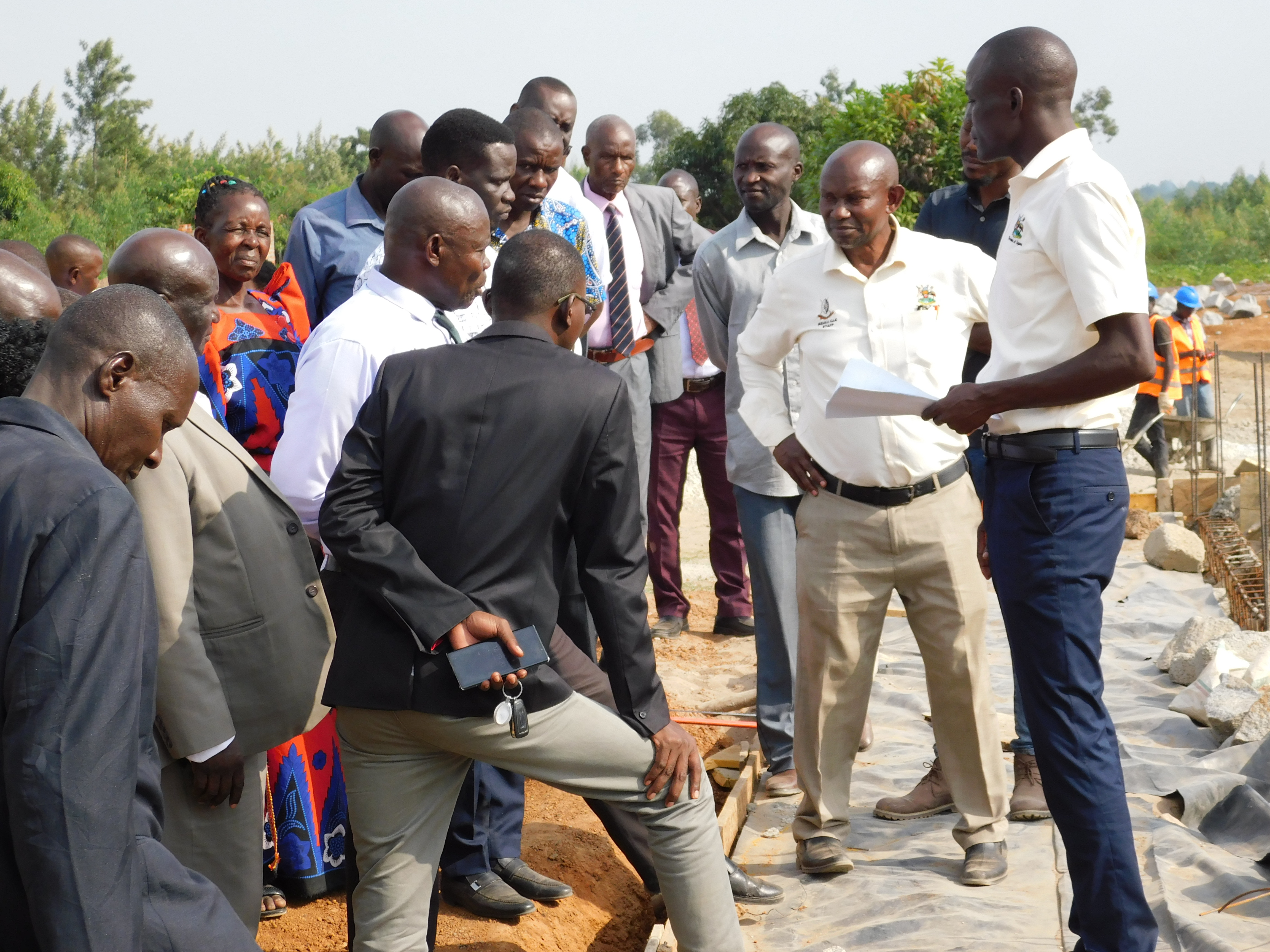 Stakeholders appreciate the construction progress at Kakule seed school.