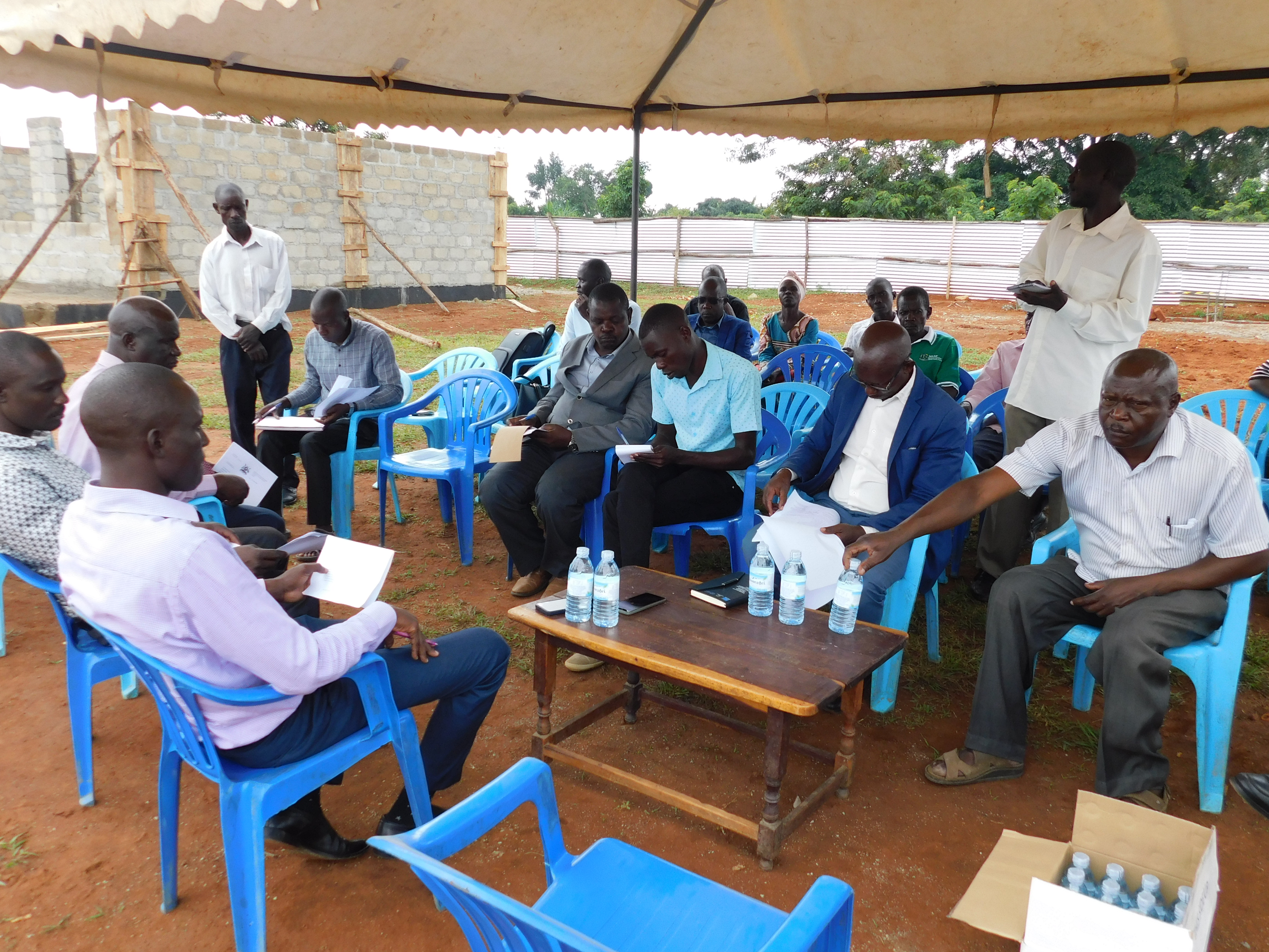 Both the political and the technical staff have been left impressed with the great work done by the Nansanga Seed school contractor.This was evident enough from a number of speeches made by different stakeholders yesterday during the fourth site meeting for the 02 sites of Nansanga Seed and Mugiti respectively.The project manager who was represented by Mr.Dida Sam noted a tremendous progress in the construction site at Nansanga Compared to Mugiti seed. He noted that the general works were at 25% as per the expected output.He informed members that the block walling for the multi-purpose hall at Nansanga seed was at lintel level with columns cast and rendering ongoing, block walling for the Classroom blocks was at lintel level with rendering and application of bituminous paint done.He also informed members that the substructure for the Administration block at Mugiti seed was complete, columns cast, block walling at lintel level, rendered pending application of Bituminous paint, block walling for the classroom blocks at lintel level, rendered and Bituminous paint applied preparing to cast columns. He added that the science lab& ICT library was at slab level and rendered. He further explained that the boys &Girls latrine was not started.He added that the staff houses were still at slab level of the substructure, VIP latrine hole done with the pit walling ongoing among others.He tasked the contractor to pull up his socks in order to have the two projects move at the same pace. He further encouraged the contractor to increase on the labor force at Mugiti Seed School and as well have women participate in some activities at the site.The District Chairperson who was represented by the Secretary Health & Education thanked Government for the continued development in Budaka and also appreciated the contractor for speeding up with Nansanga works.He further expressed his disappointment with the Mugiti seed site which was lagging behind despite being ahead of Nansanga in the previous site meeting.Mr. Mukamba Ibrahim who represented the RDC in the meeting asked the contractor to devise possible means of ensuring that work progresses well in Mugiti.He also urged him to address the issue of environmental management in all the two sites since the rains are back.While addressing members, the Contract Manager Mr. Higenyi Paul informed members that he was overwhelmed with the ongoing works at Nansanga seed comparing it to the previous site meeting whereby the contractor was lagging behind.He also asked the contractor to double his efforts so that the project is completed within the set timeframe of 02 years or even earlier.The Contractor appreciated the district staff for the advance payment and the first interim certificate issued to him. He also promised to do his best to ensure that the construction works are completed before contract duration. The contractor also assured members that he will plant fruit trees in the sites since the rainy season had started.