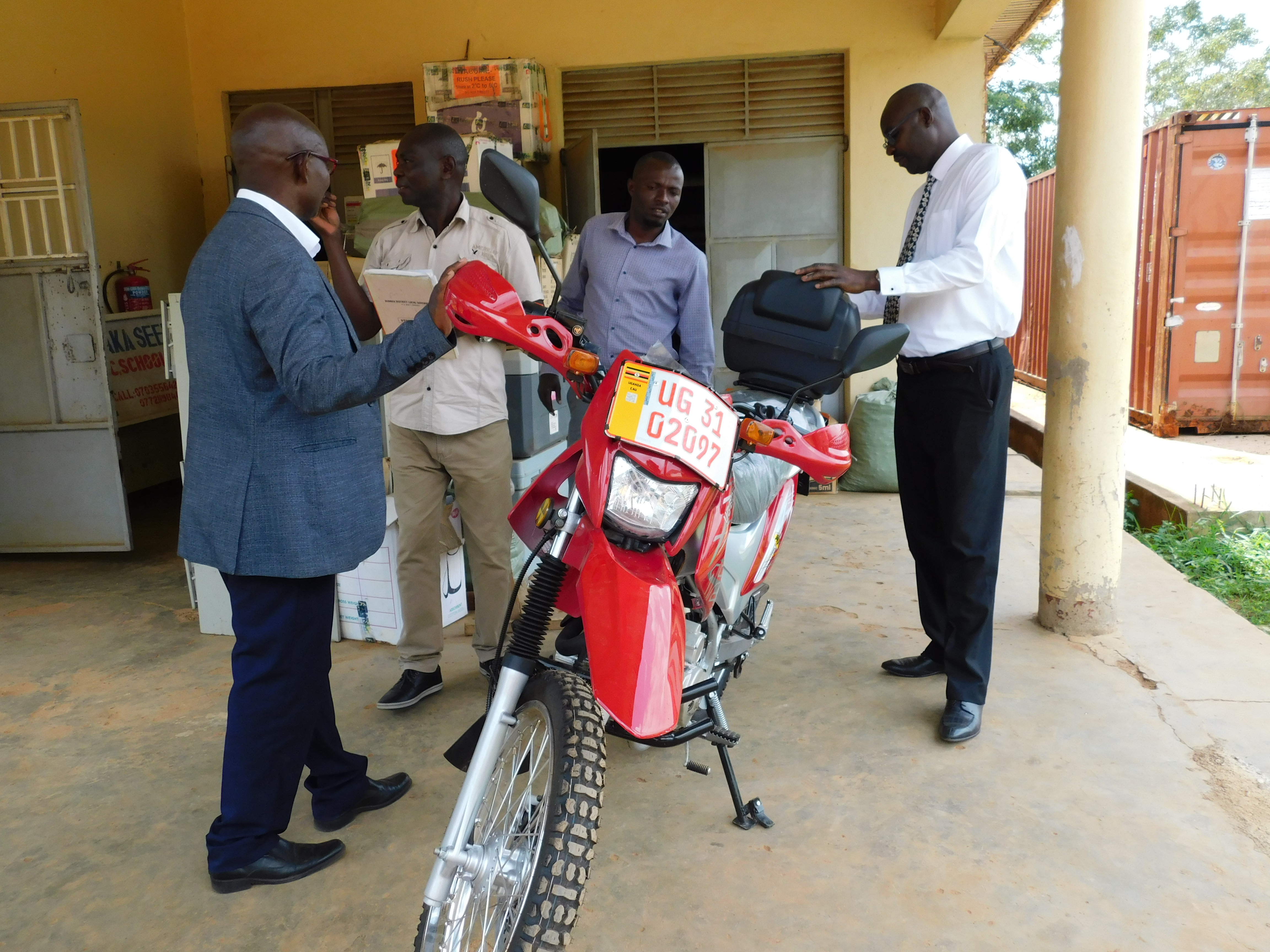The Health Department has today received a motorcycle from Ministry of Health intended to support in the surveillance activities in the district.While handing over the Motorcycle to Dr.Mulwani Erisa the District Health Officer Budaka, Mr. Mugombe Yusuf, the Principal Assistant Secretary thanked MOH for having Budaka at Heart.He also tasked the DHO to ensure that the motorcycle is maintained and put to good use by the responsible Officer.Dr.Mulwani also appreciated the MOH for supporting Budaka with a motorcycle which he believes will improve on service delivery.