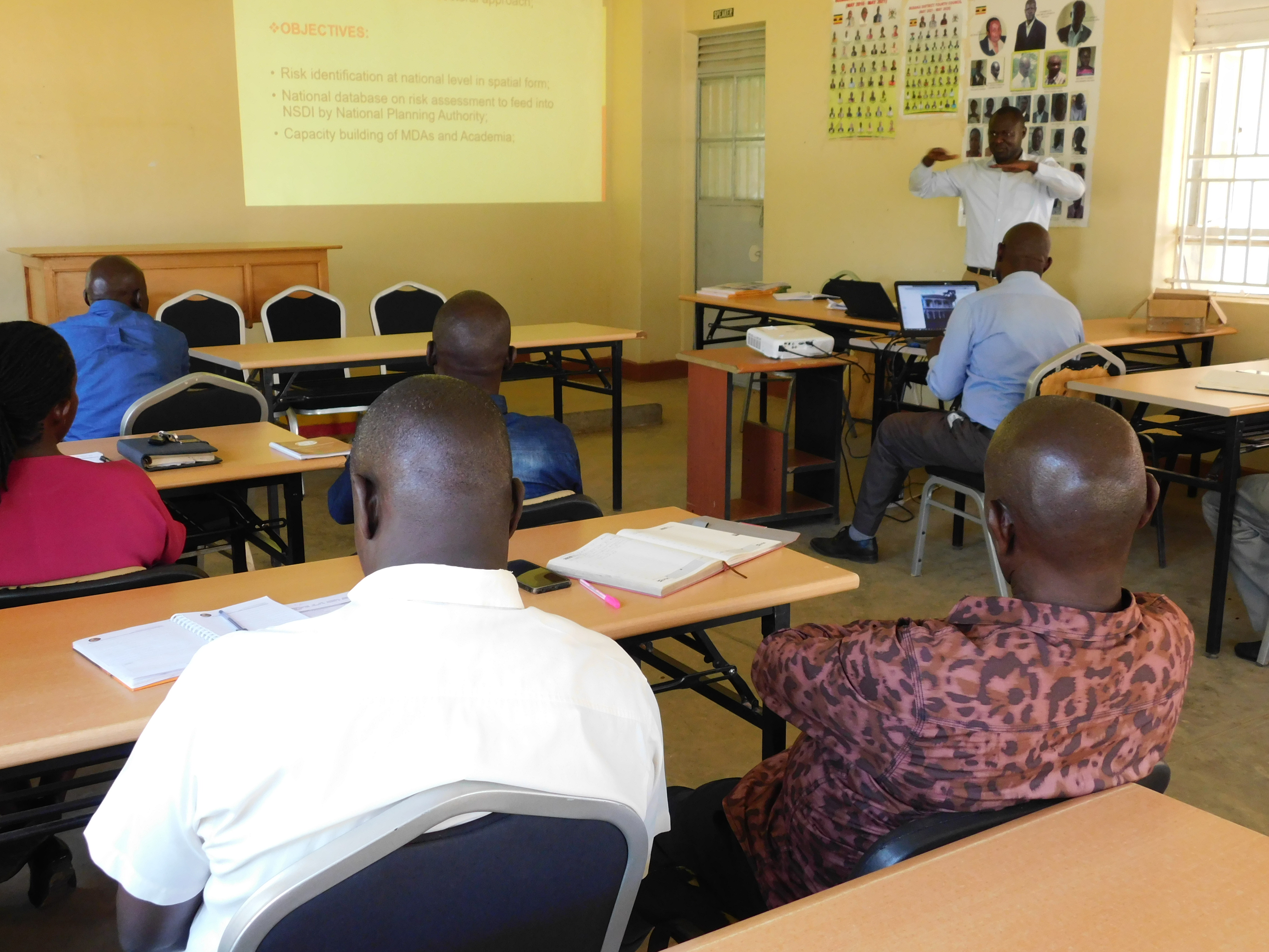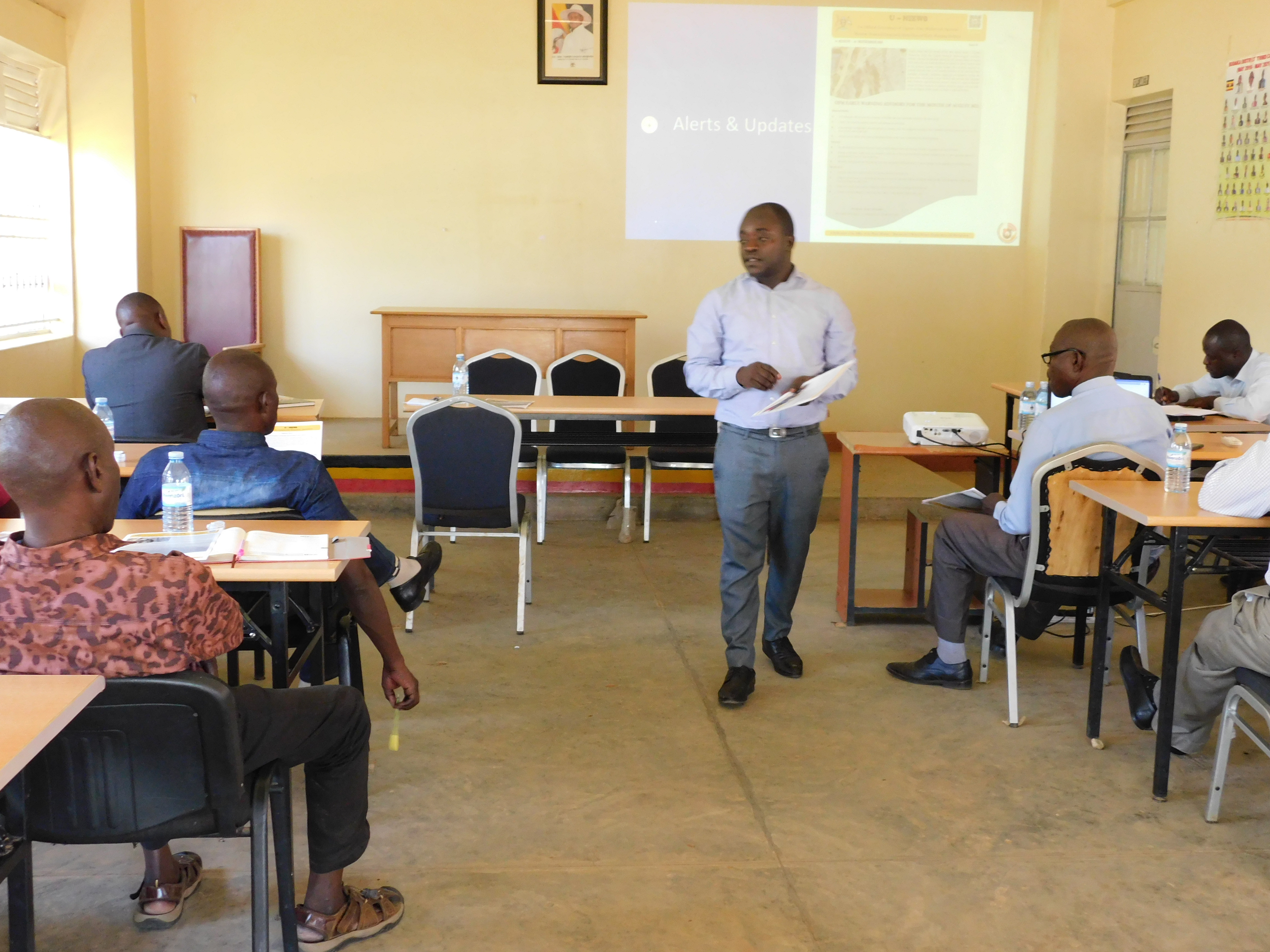 Office of the Prime Minister has today disseminated the National Risk & Vulnerability atlas and the Uganda National Integrated Early Warning system(UNIEWS) of Uganda particularly Budaka in the District Council Chambers.According to Mr. Oketcho Emmanuel, the Disaster Preparedness Officer OPM, he noted capacity building of MDAs in risk identification, risk assessment and risk management as one of the objectives of the dissemination exercise among others.He also informed members about the areas covered in the atlas that included; risk analysis, hazard analysis, exposure analysis, vulnerability analysis and mitigation measures in disasters like floods, drought and earth quakes excetra.While making his presentation, Capt.Stanley Osaba informed members that the National Emergency Coordination & Operations Centre (NECOC) which he heads is mandated to publish the bi-monthly National Integrated Early Warning Bulletin.He further explained that through the disaster risk reduction platforms, they are able to provide alerts and updates on crisis response and recovery action for sustained productivity and socio-economic growth of the country.Capt. Stanley also took members through the early warning advisory for the month of August to September 2023 that comprised of; high likelihood of near normal rainfall in some Eastern parts of Uganda, incidences of flash floods especially in the urban areas between the months of September to December and high likelihood of malaria outbreak due to the on and off rains predicted.He further tasked the District Disaster Management Committee to ensure that they sensitive communities on radios and other platforms about the rainfall outlook, biological and transport technological hazards so as to mitigate such disasters.The District Chairperson Mr.Pajje Emmanuel called for timely responses to disasters in the district by OPM.He further pledged his commitment in driving the message home.
